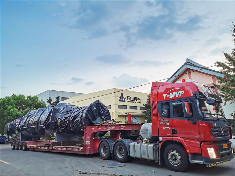 2020年9月1日傍晚,载着一条“巨龙”的超低平板汽车浩浩荡荡地驶出开山第三工业园区。这条“巨龙”就是浙江开山压力容器有限公司为印尼SMGP地热发电项目二期电站11兆瓦轴流ORC膨胀发电机组制造的蒸发器。该产品总长16米,单体重量98吨,是迄今为止浙江开山压力容器有限公司制造吨位最大的容器产品。“巨龙”将从上海港出发,最终目的地印尼乌拉湾港口。